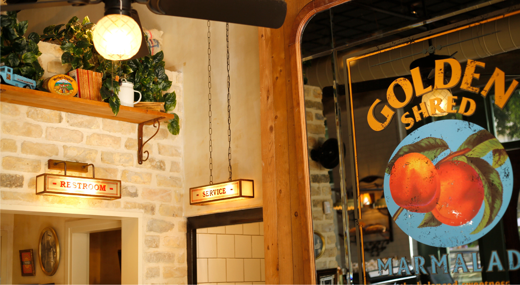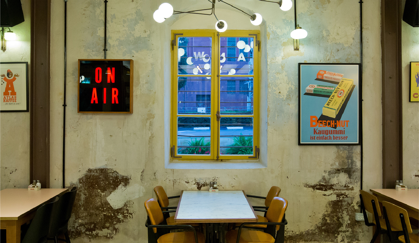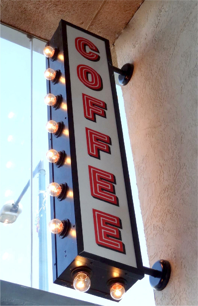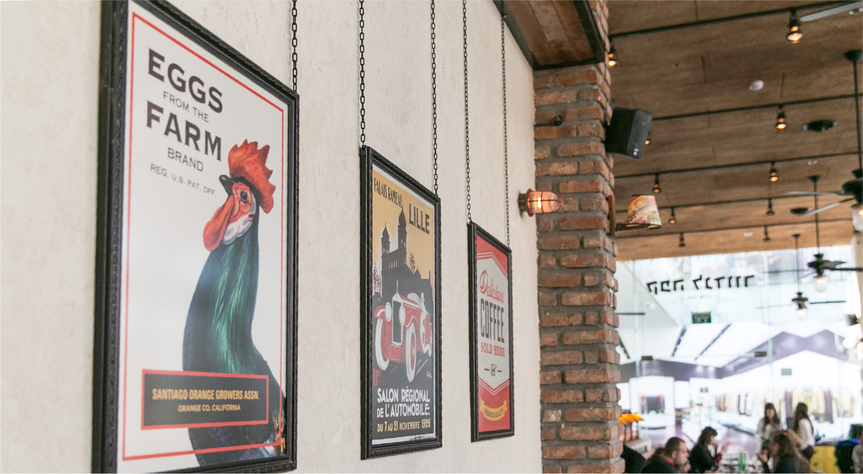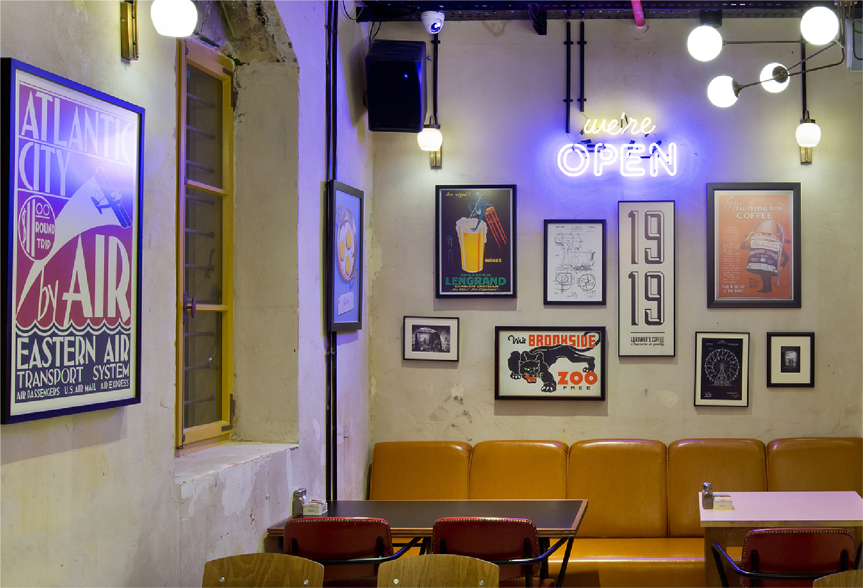'Landwer's Coffee' shops store branding is spreading over many varied formats: signage, tables, ceramics, mirrors, graphic printed walls, posters, lighting fixtures and much more